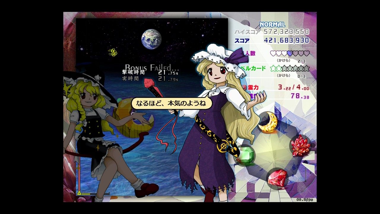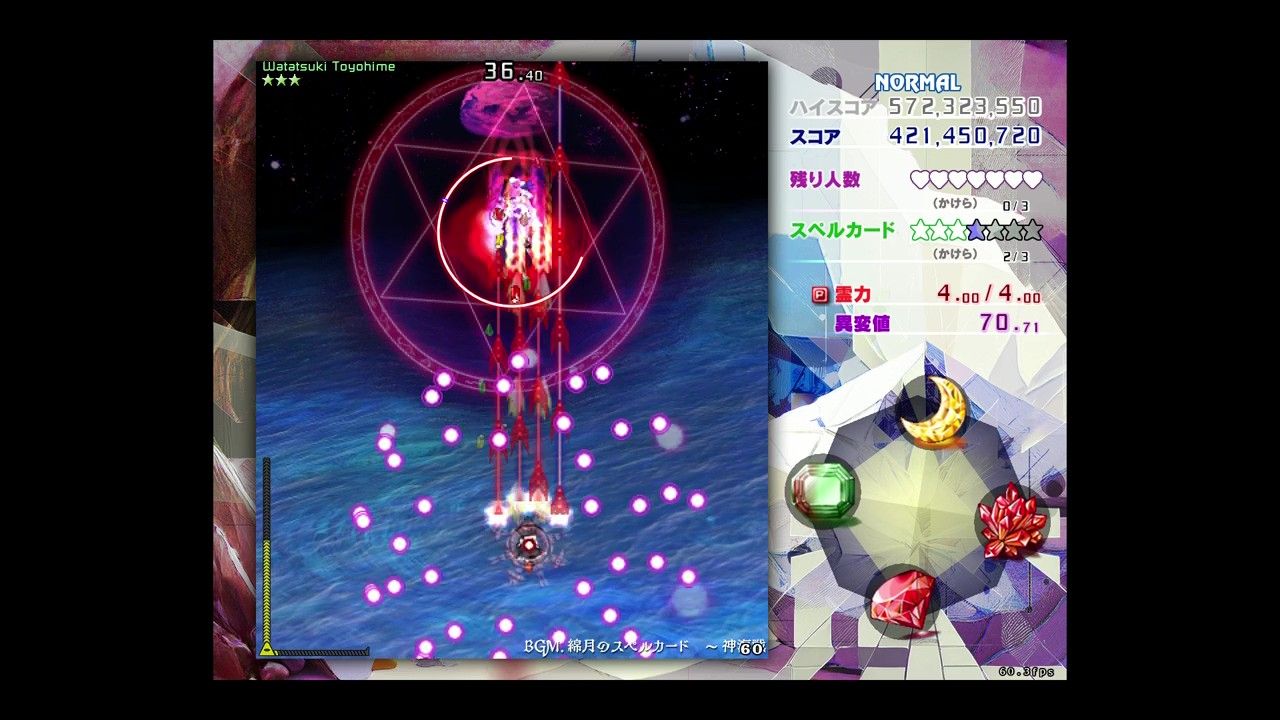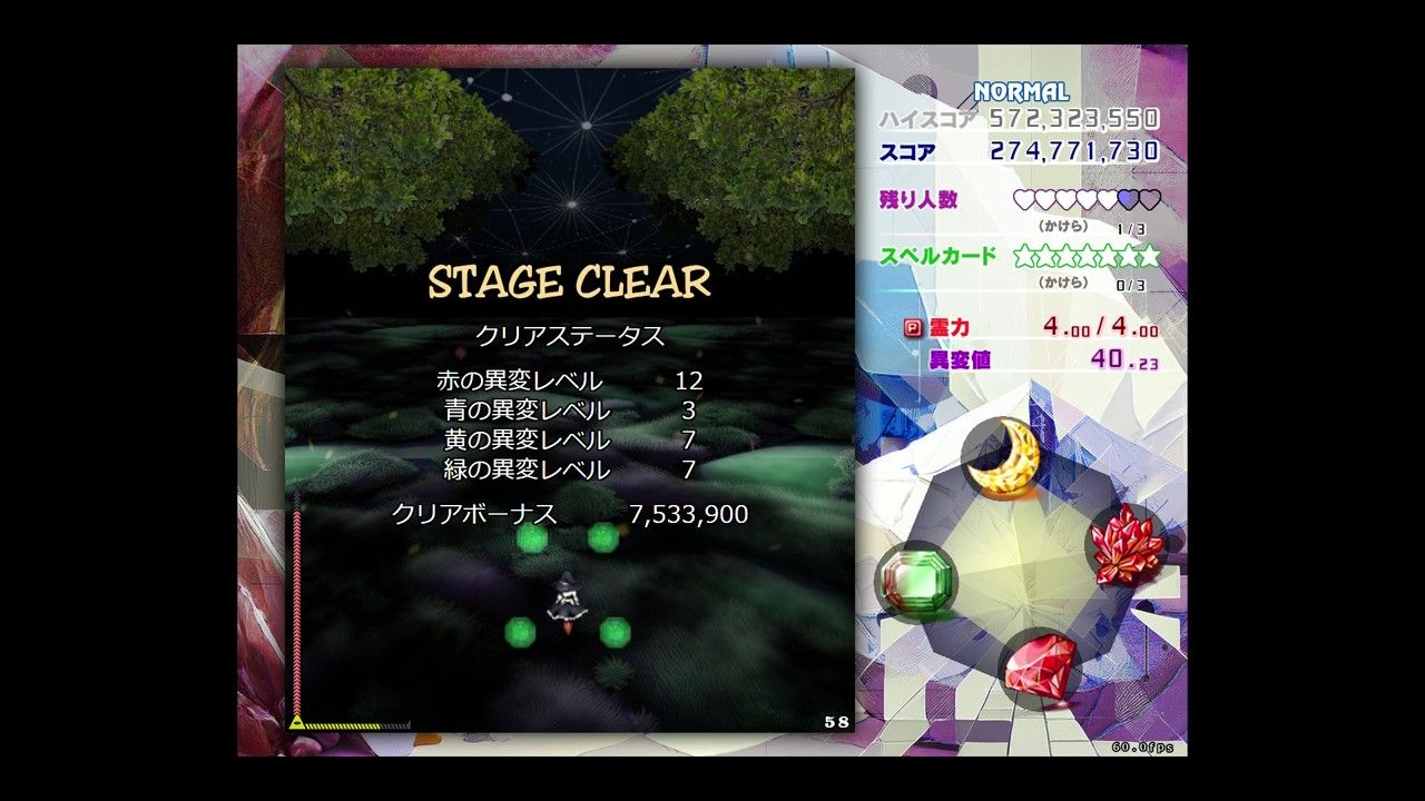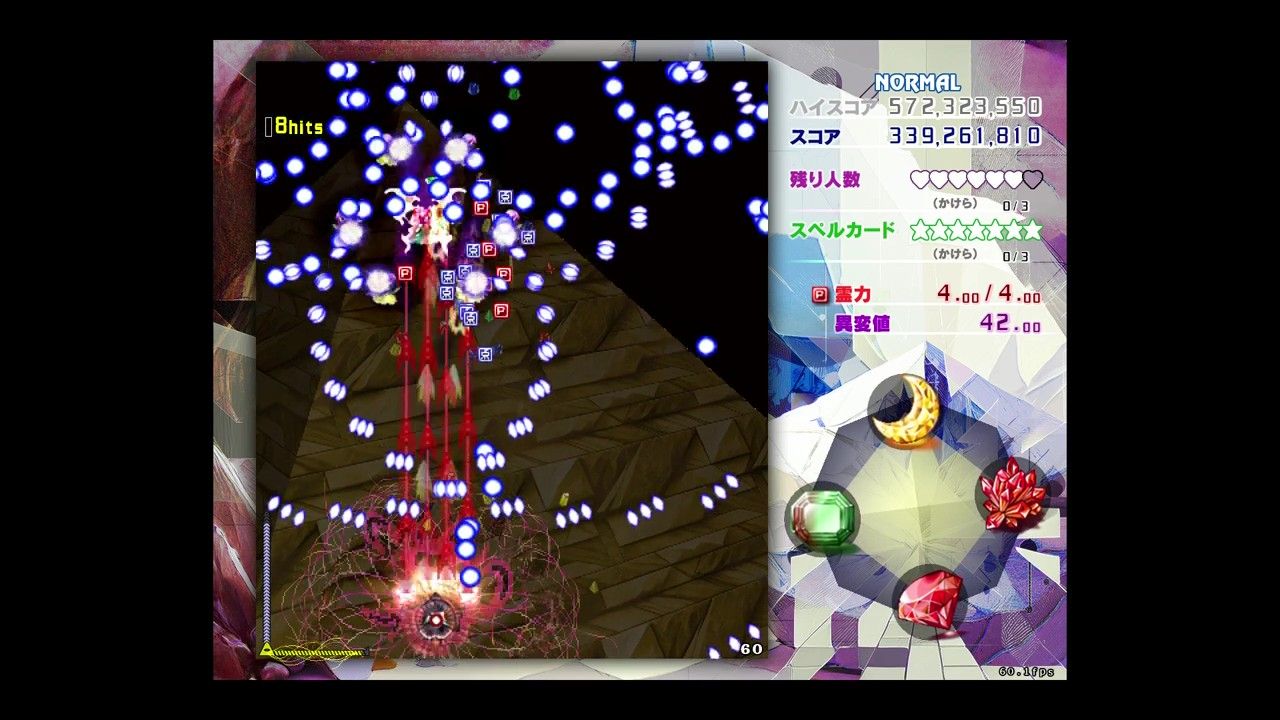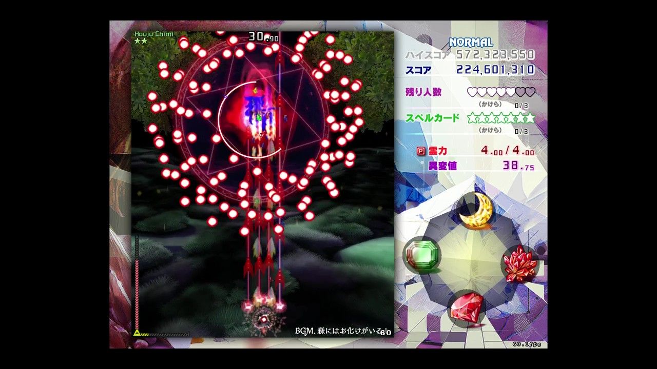 道中、ボスともに難易度が跳ね上がります。異変攻撃またはボムがないととても安定して切り抜けられるスペルカードは無いといってもいいレベルです。できる限り消費を抑えつつ突破を目指します。