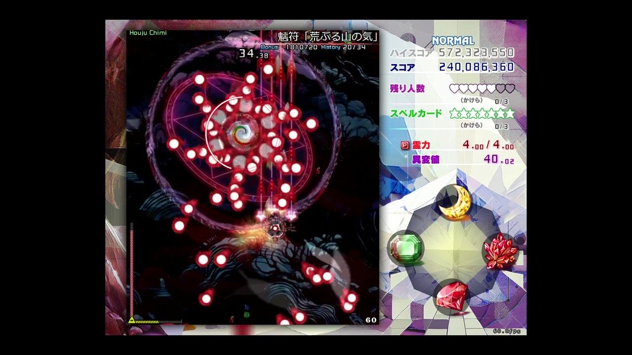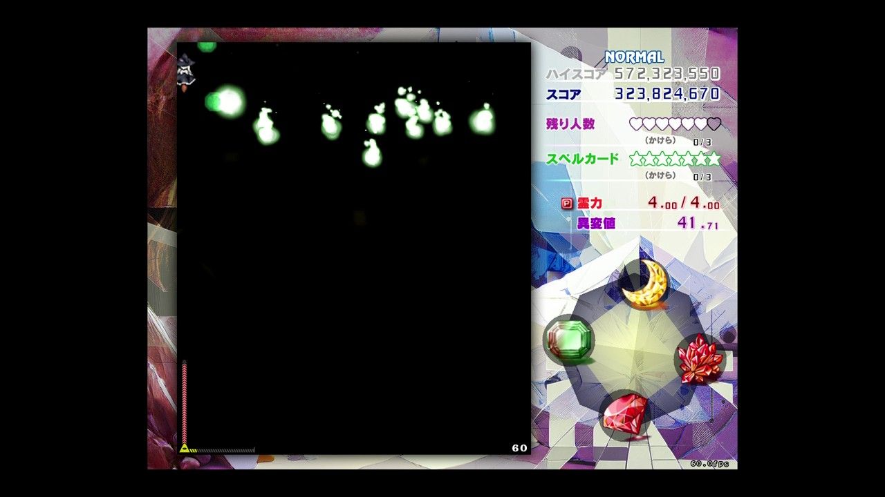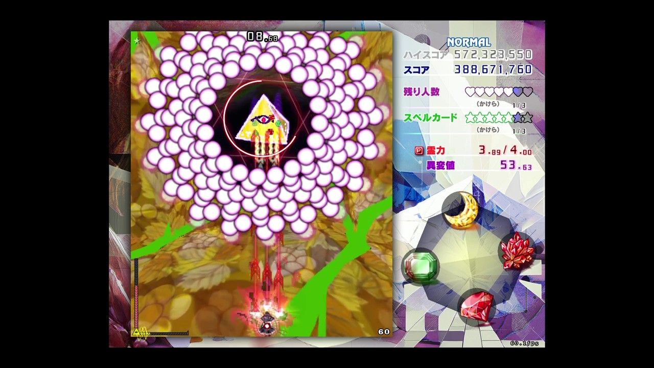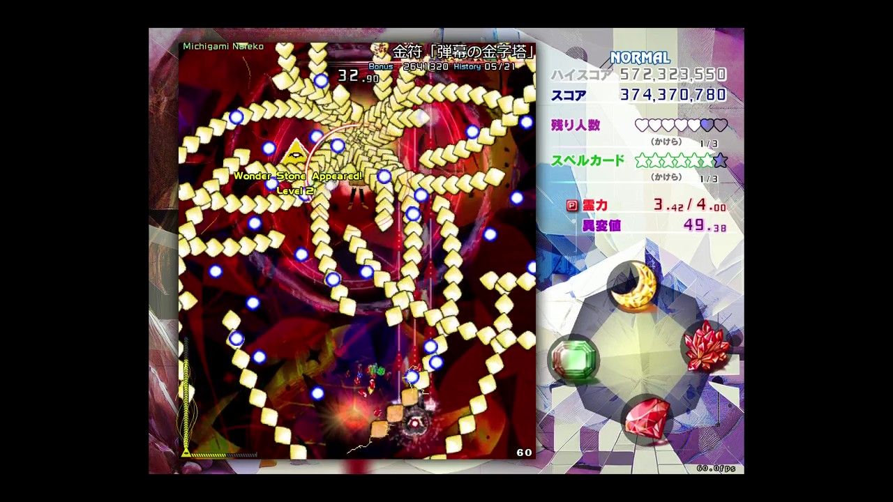 人によって得意・苦手が分かれると思います。弾が配置されたらグレイズを稼いで異変石の欠片を稼ぎ、避けられる人は避けて、無理な人はボムを撃ちましょう。