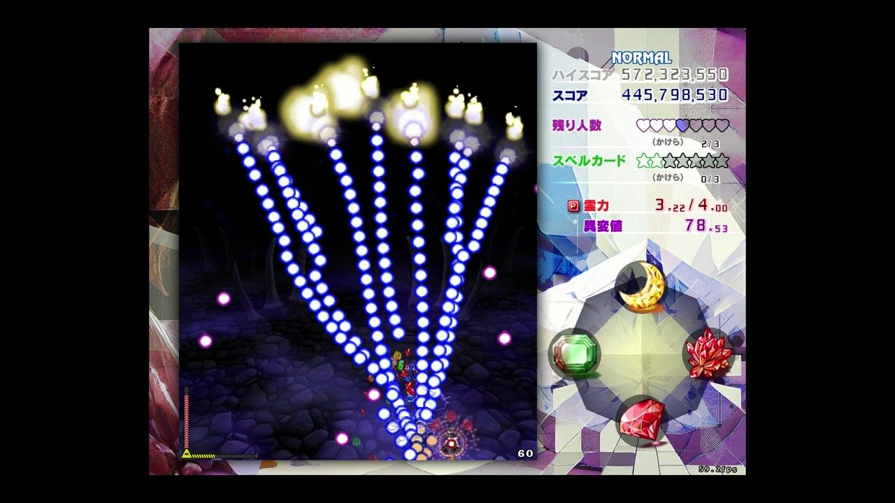 今作のイージーはしっかり難易度を落としてくれていますが、それでもちゃんと手ごわいですし、ざっくりと全体の弾幕がどんな感じなのかもつかめます。意地を張らずENCからやりましょう。